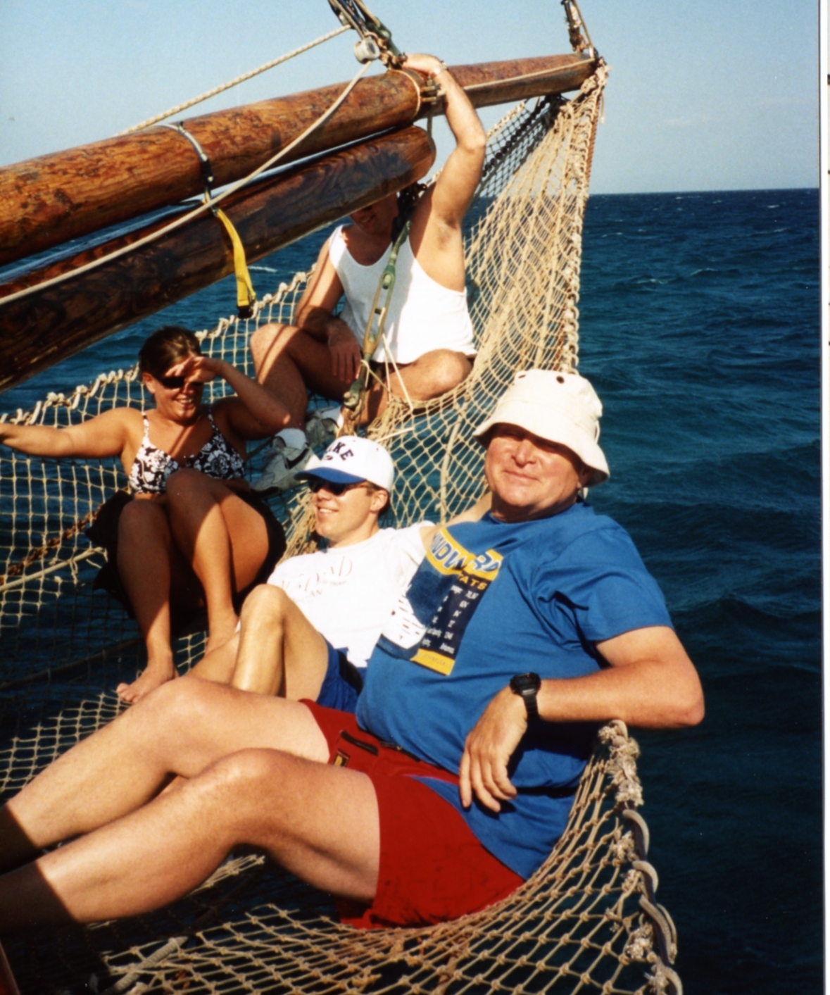 Dick riding in the net while underway.