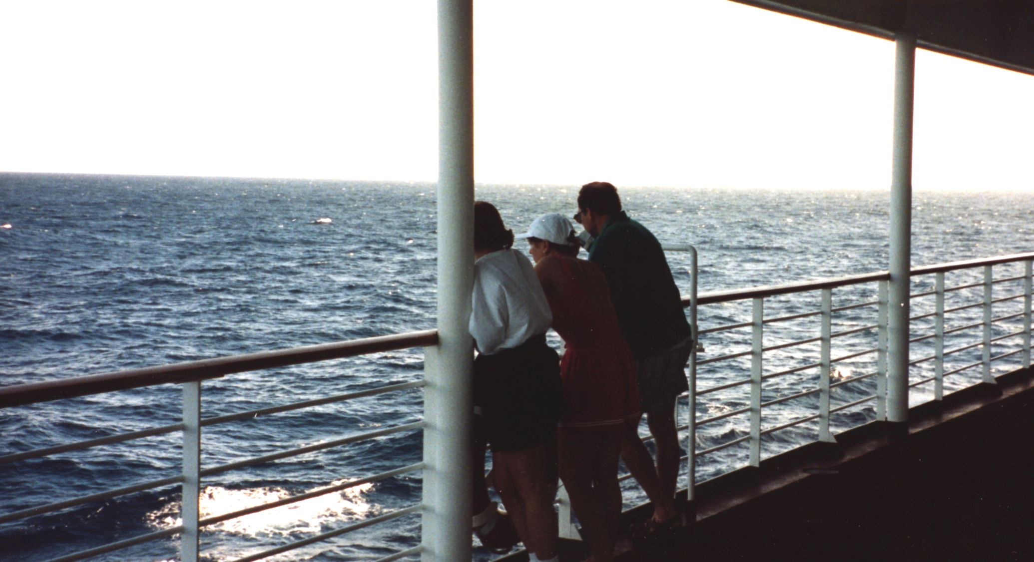 Sharon, Brenda and Mark looking for dolphins and flying fish.