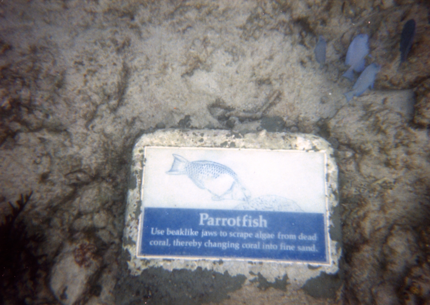 Underwater guide signs for snorkelers at Trunk Bay - St. Thomas.