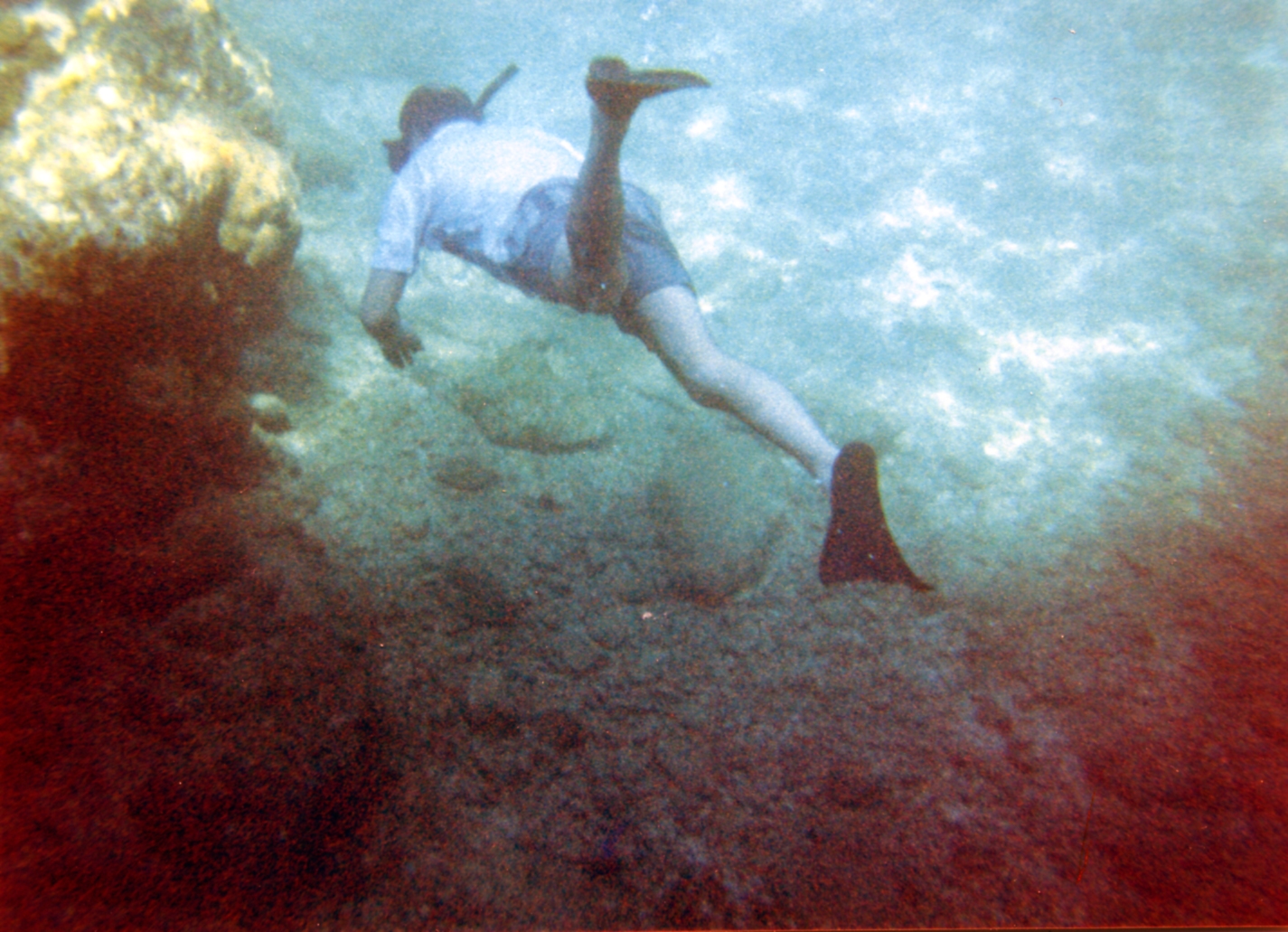 Mark snorkeling at Norman Island - Tortola British Virgin Islands (mask works much better now).