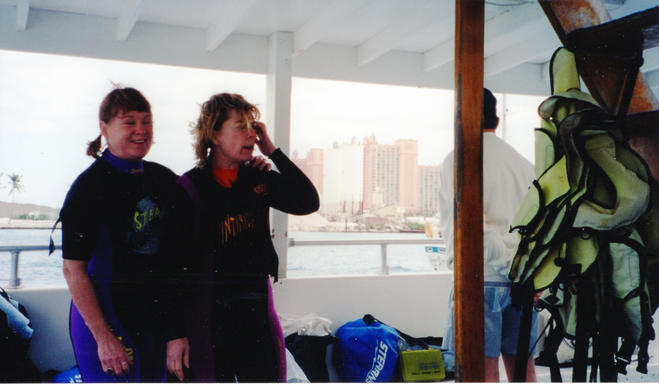 Sharon and Brenda on the dive boat after a dive - Nassau Bahamas.