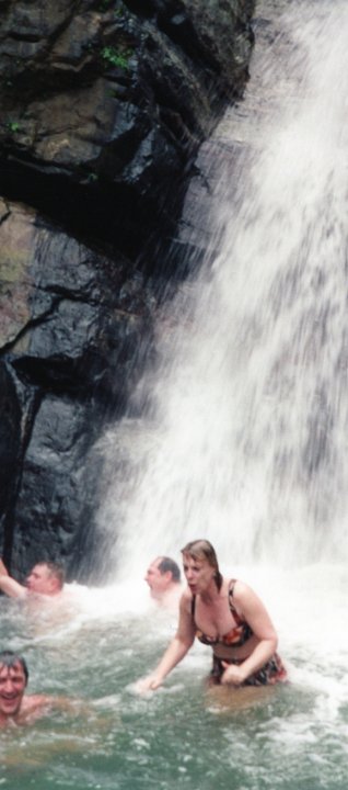 Dick, Mark and Brenda in the COLD, COLD water under the El Yunque waterfall, Puerto Rico.