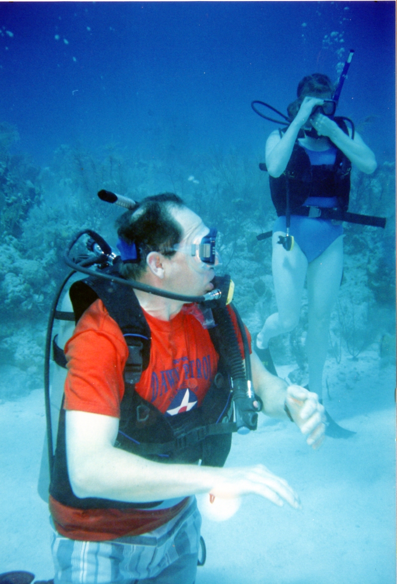 Mark diving at Half Moon Cay, Bahamas.