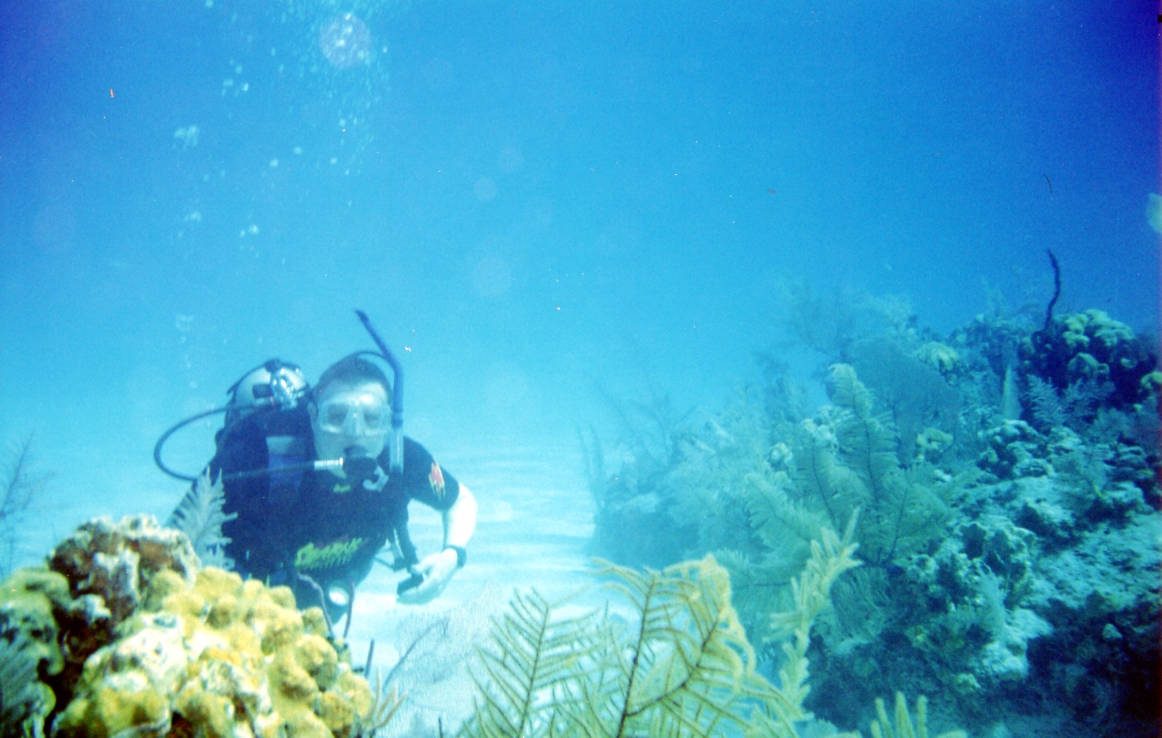 Dick diving at Half Moon Cay, Bahamas.