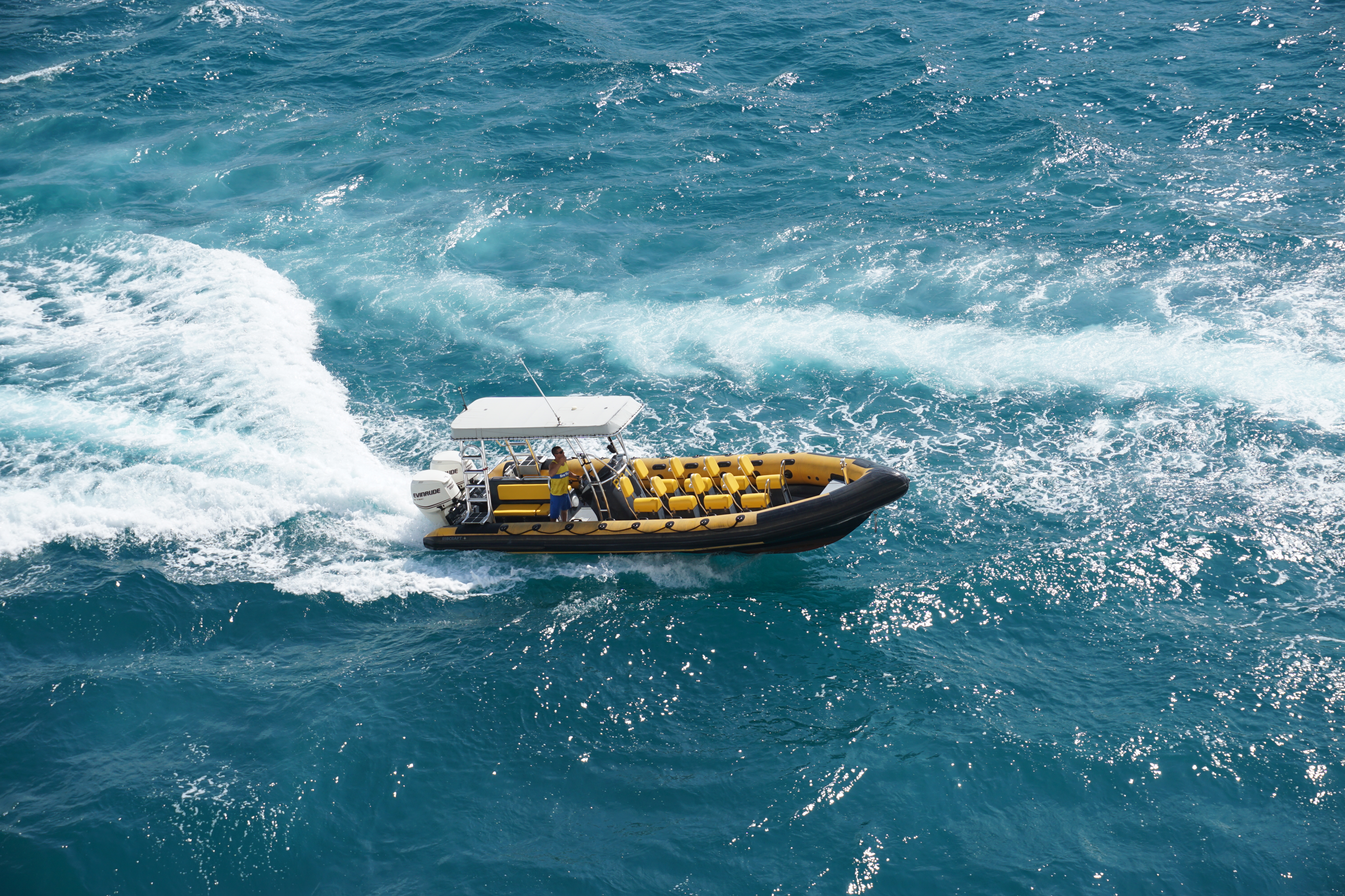 Docking at Labadee, Haiti. Shore excursion vendors showing off their offerings (blowing whistles and honking their horns).