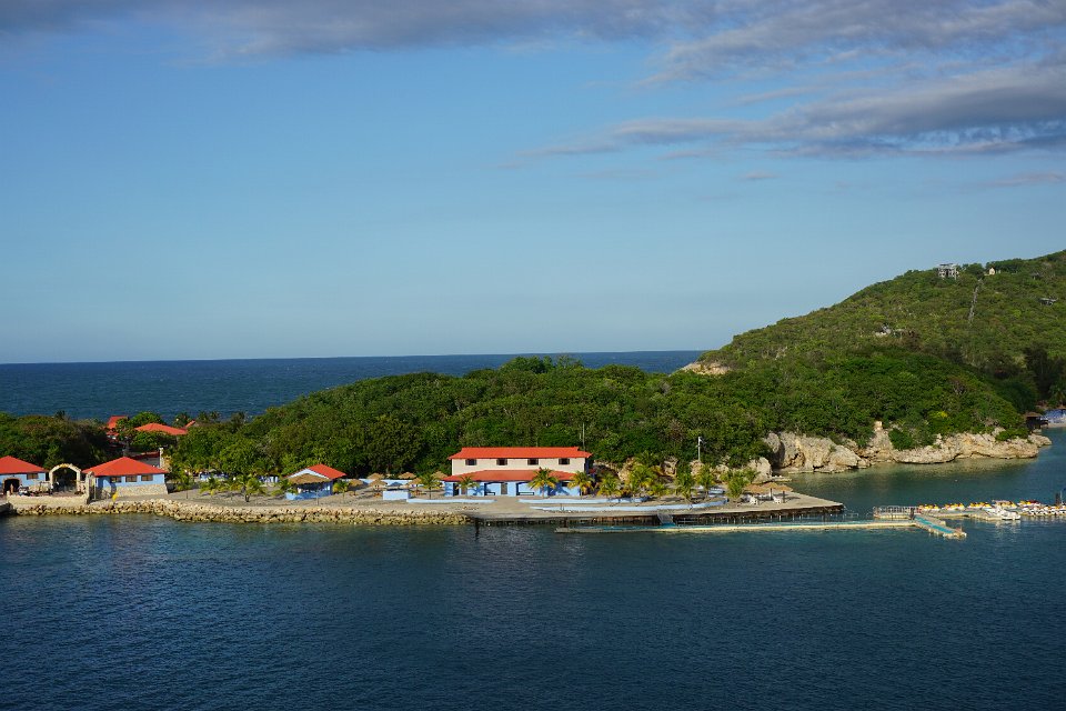 You can see the Dragon's Breath zipline tower up on the hill on the left (Labadee, Haiti).