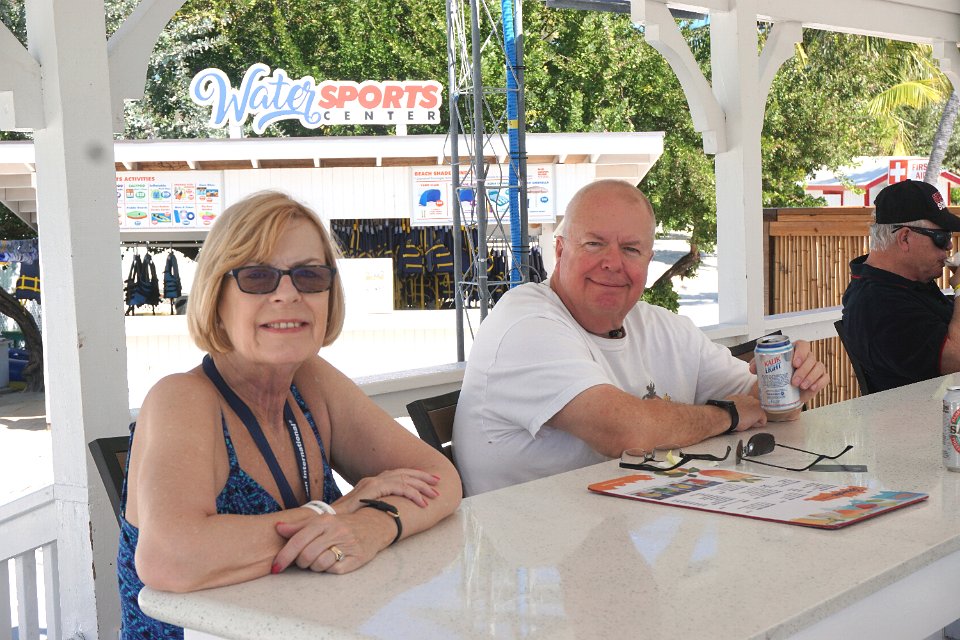 Brenda & Mike at the bar at Blue Lagoon Island Bahamas