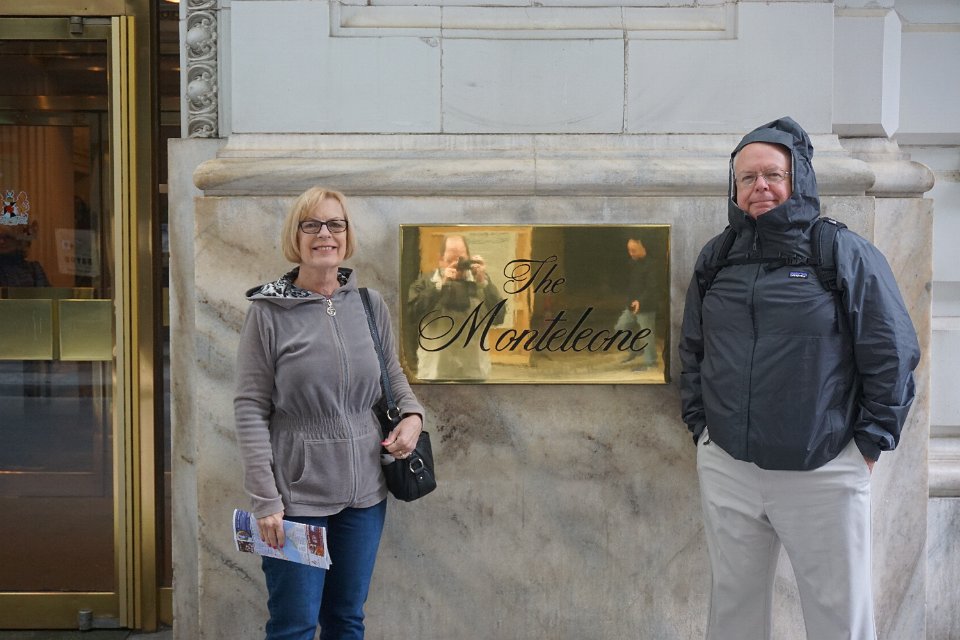 Brenda & Mike standing in front of The Monteleone Hotel, New Orleans