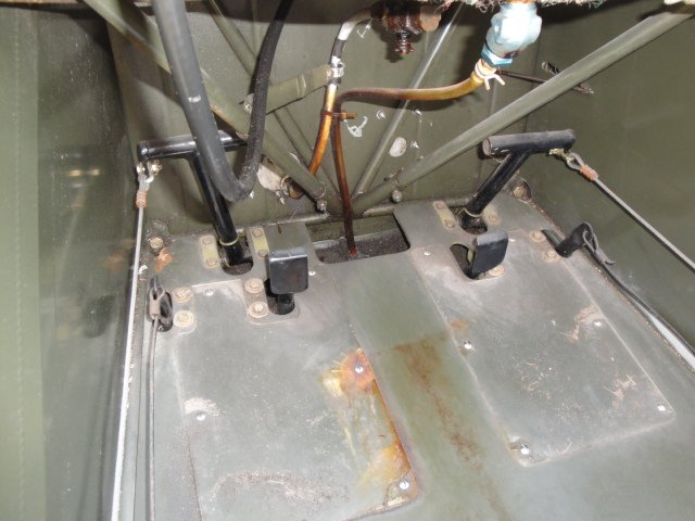 Front passenger foot controls and bottom of tank